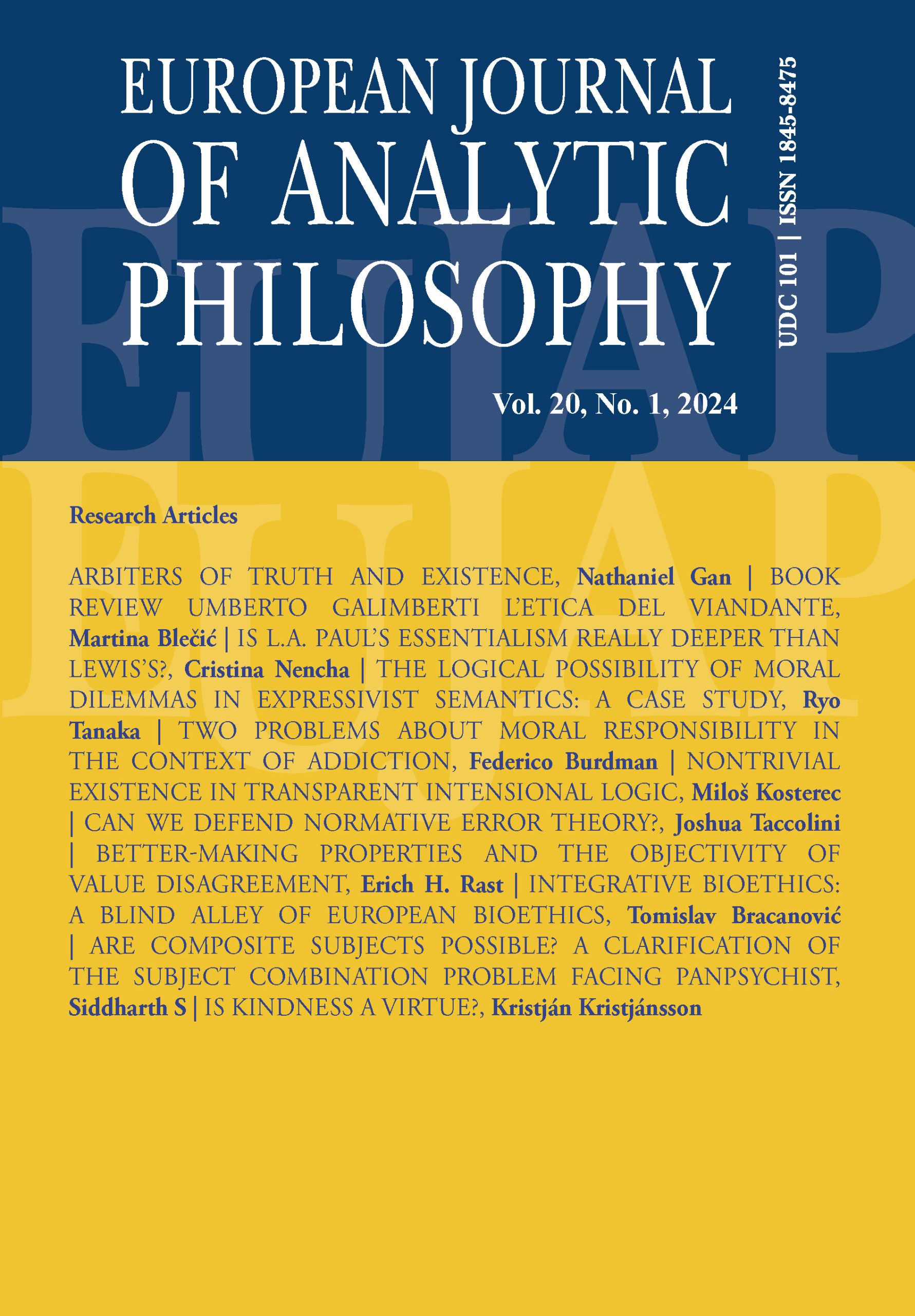 We are thrilled to announce the release of the complete Volume 20, Issue 1 (2024) of EuJAP. This issue features a diverse collection of articles that explore various philosophical topics, ranging from ontological investigations of truth to discussions about the foundations of normativity.